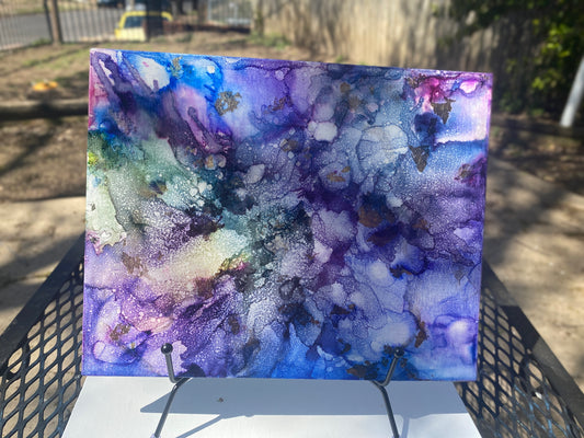 Colorful Alcohol Ink Painting-Flat Canvas Board-8x10 Wall Hanging-Tabletop Decor with Easel or Hanger-Strategically Placed Gold Foil Accents