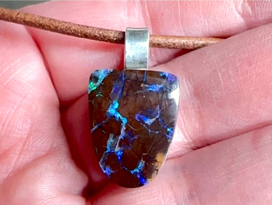 Boulder Opal Necklace/14.5ct Pendant/ Australian/Loose Stone for Jewelry Making/Sterling Silver/Perfect Fathers Day or Birthday Gift