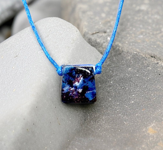 Blue Australian Boulder Opal on Adjustable Medium Blue Hemp Cord Necklace/Choker-Handmade in the USA