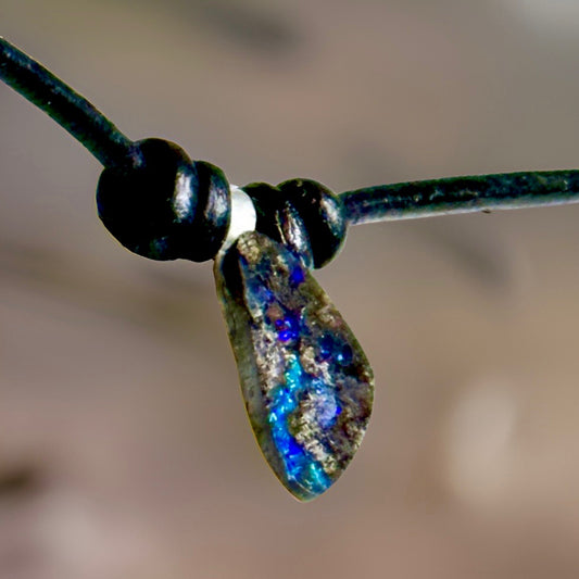 Blue and Purple Boulder Opal Necklace-Australian Freeform Opal with Smooth 2.0mm Black Leather Cord and .925 Sterling Silver Hardware