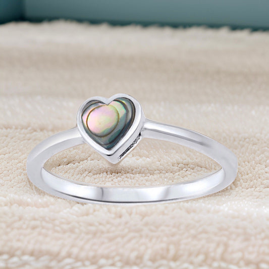 Abalone Small Heart Ring-.925 Sterling Silver-Sizes 4-10-Dainty Love Ring-Girlfriend-Wife-Valentines-Birthday-Anniversary Gift