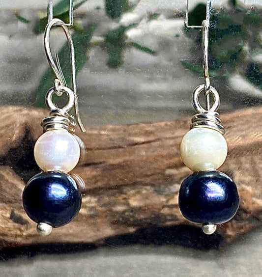 Black and White Freshwater Pearl Earrings in .925 Sterling Silver-Elegant & Handmade Minimalist Jewelry