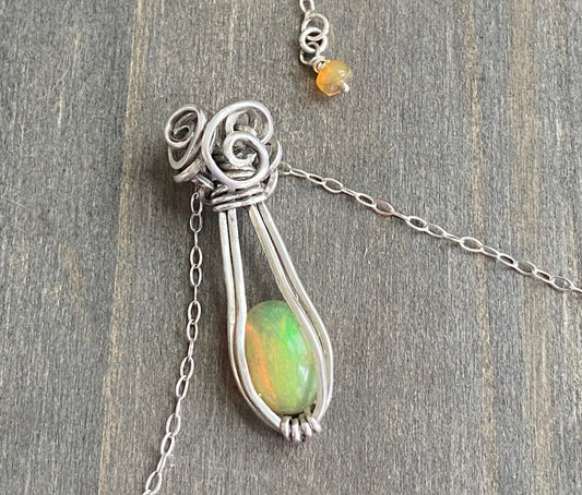 Ethiopian Welo Opal Necklace in .925 Sterling Silver-With Chain-Perfect Gift for Mom Girlfriend Wife-Pale Yet Bright