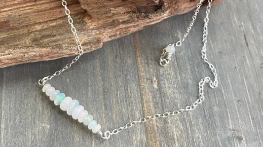 High Quality AAA+ Ethiopian Opal and Silver Bar Pendant Necklace