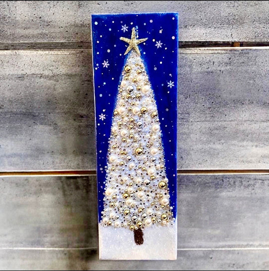 Crushed Glass and Resin 4x12" Awareness Christmas Tree Wall Hanging, Bling Tree & Tiny Ornaments, Mantle or Wall Art, Cancer Awareness