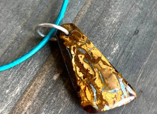 Gorgeous 15ct. Blue Australian Boulder Opal Necklace with -Adjustable Leather Cord-Absolutely Unisex-A Perfect Gift
