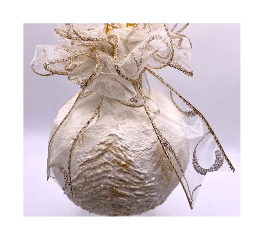 White Christmas Tree Minimalist Farmhouse Style Ornament-Elegant Sparkling Textured Trees w/Gold Accents and Glass Glitter Holiday Decor