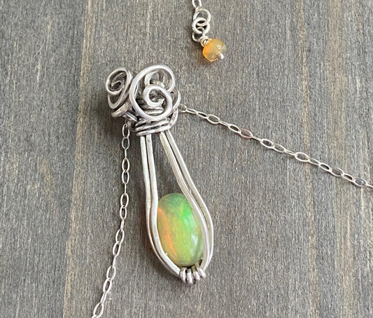 Radiant Pale Yellow Ethiopian Welo Opal Necklace in .925 Sterling Silver
