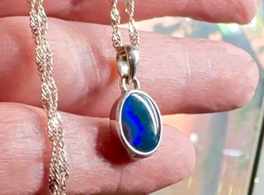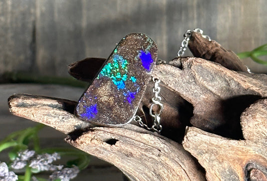 Stunning Australian Boulder Opal and Sterling Silver Necklace