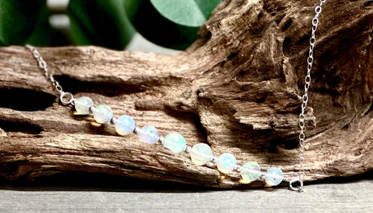 Opal and Sterling Silver Bar Pendant Necklace-Ethiopian Round Faceted 3-5mm Beads-Christmas gift for her, Valentines, Spiritual Healing