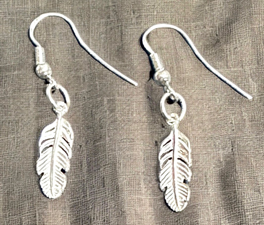 Sterling Silver .925 Minimalist Feather Earrings, Small Cute Casual Dangle Earrings, Unisex, Symbol of Freedom & Strength, Native American