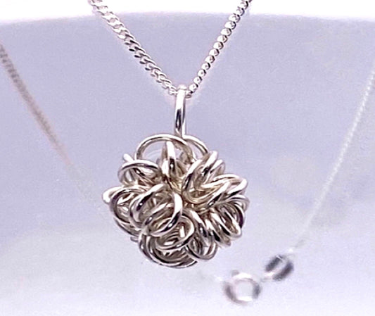 Tangled, Twisted Coiled Confetti Wire Ball .925, Necklace-Argentium Silver (Sterling Silver +)-Minimalist BoHo Trendy Style Pendant