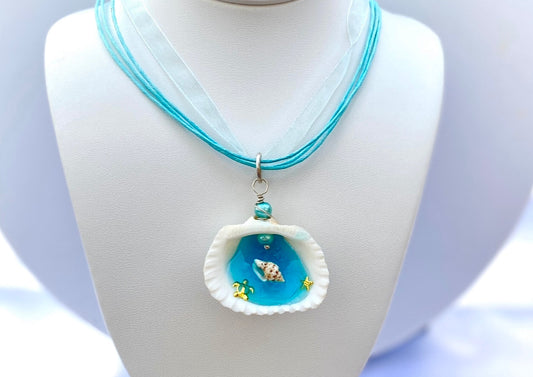 White Seashell Necklace-Resin Beach Scene Seashell Ornament-Ocean Car Charm-Coastal Jewelry-For Her For Him For Them
