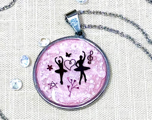 Stainless Steel Ballerina Necklace-Two Pendant Styles-Two Chain Choices- Pink Background in Stainless Steel Dance-Little Girls-Big Girls