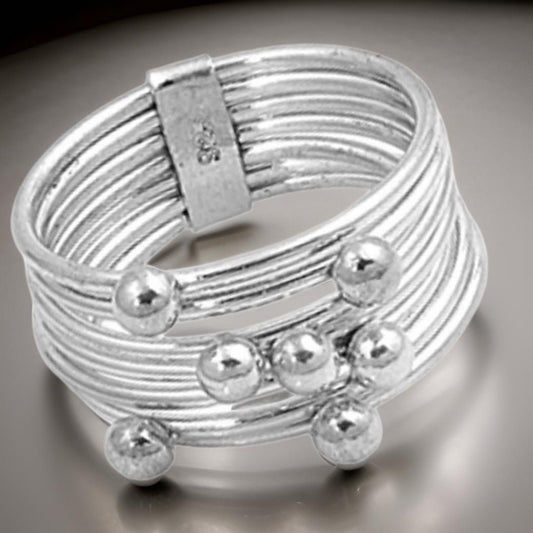 Stacked 7 Band and 6 Bead .925 Sterling Silver Fashion Ring-Total Bands of 11mm-Birthday for Her-Special Gift-Great Energy and Vibe