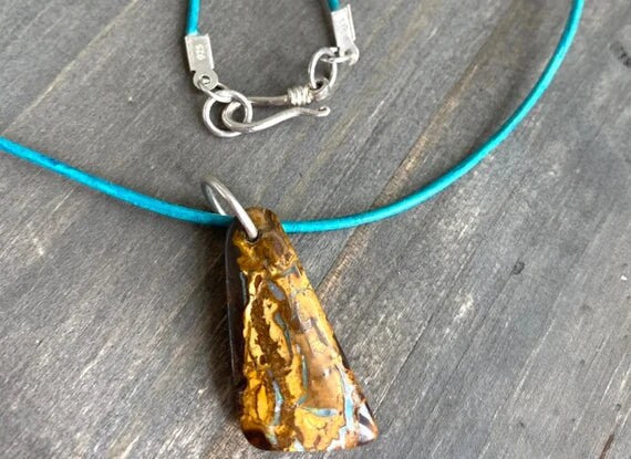 Exotic Australian Koroit Boulder Opal and Sterling Silver Necklace