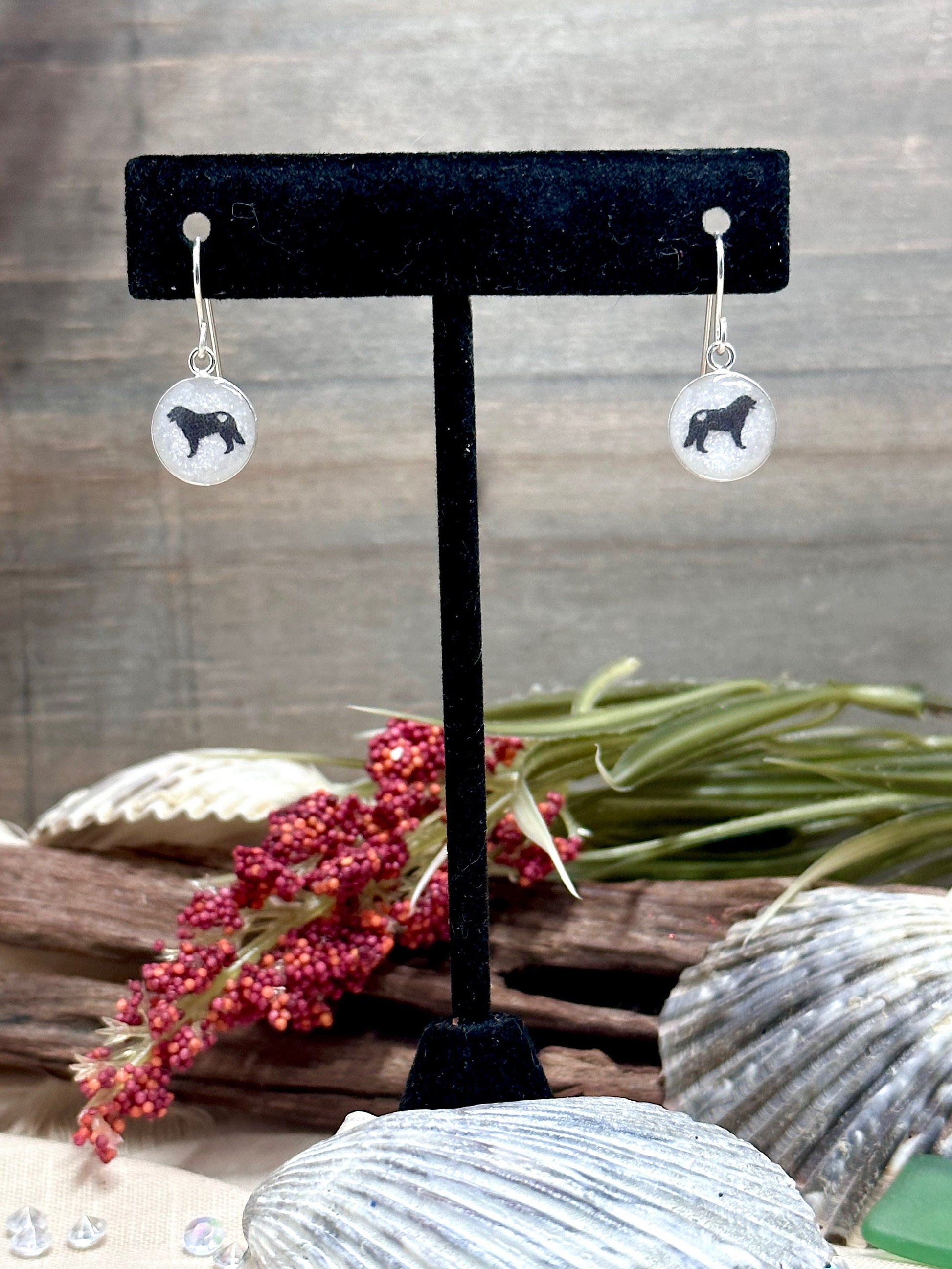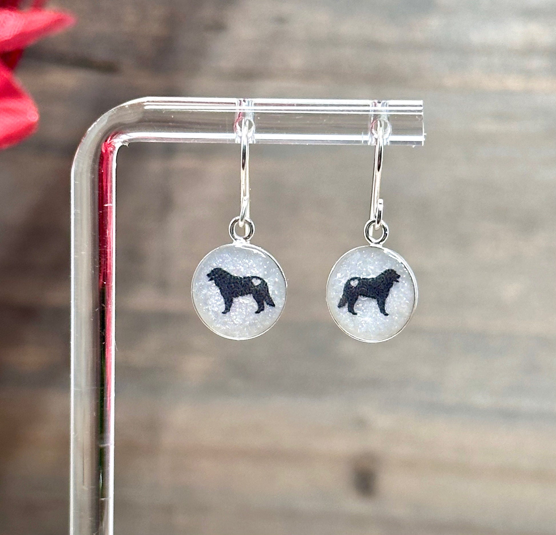 These cute little earrings contain the sweetest little silhouettes of black Bernese Mountain Dogs or Greater Swiss Mountain Dogs. You can almost imagine one of the tiny Berners “leaning” into you in true BMD fashion. If you’ve ever known one of these gentle giants, you absolutely get it.