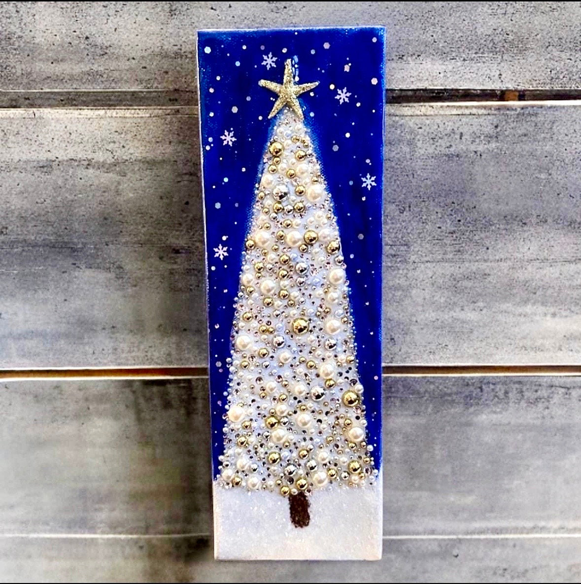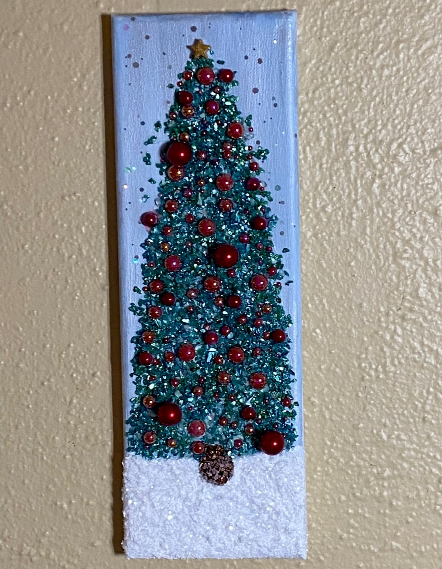 12x4" Stretched Cotton or Cradled Wood Canvas beautiful, minimalist Crushed glass sparkling mixed media Christmas Tree art.