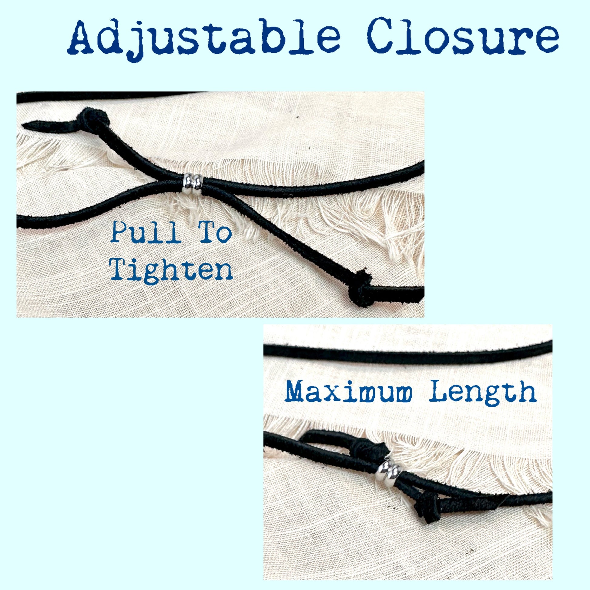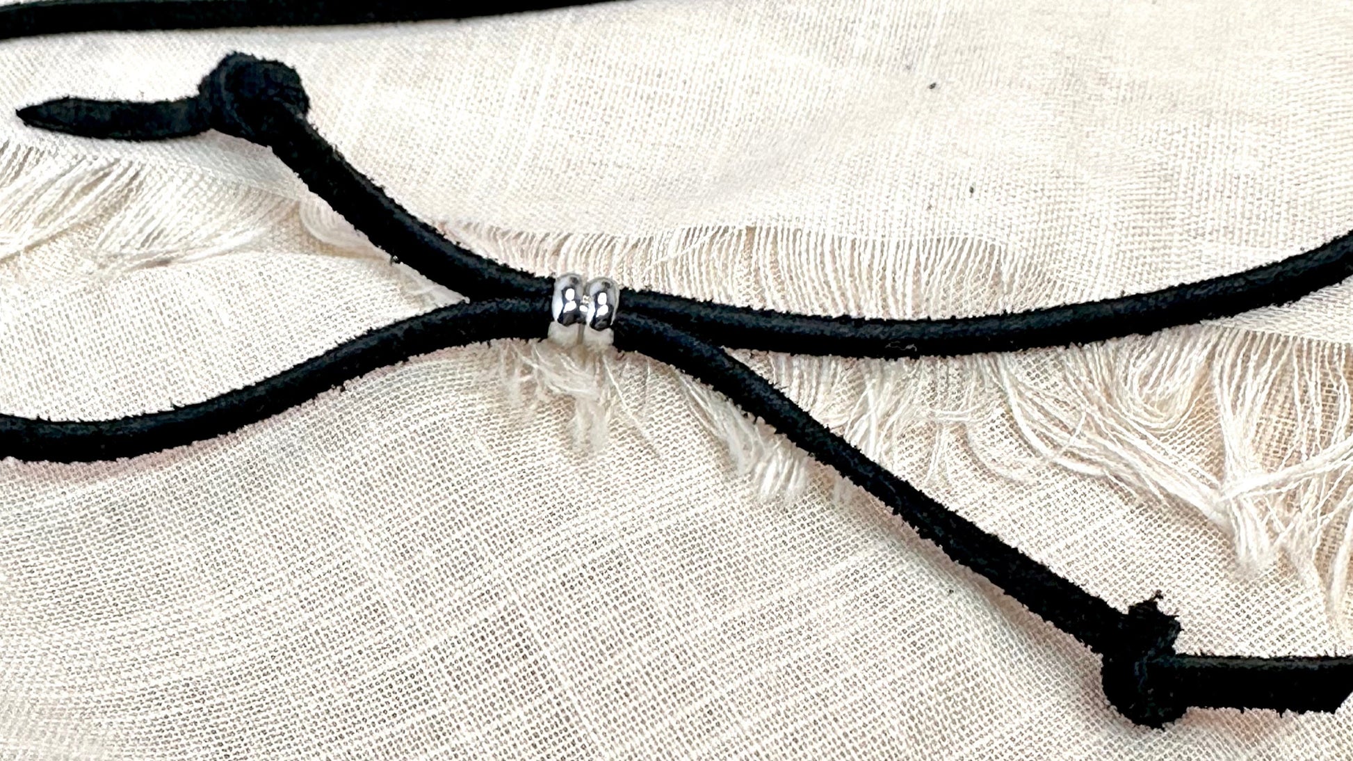 Minimalist flat black suede leather cord that gives you two trendy options.