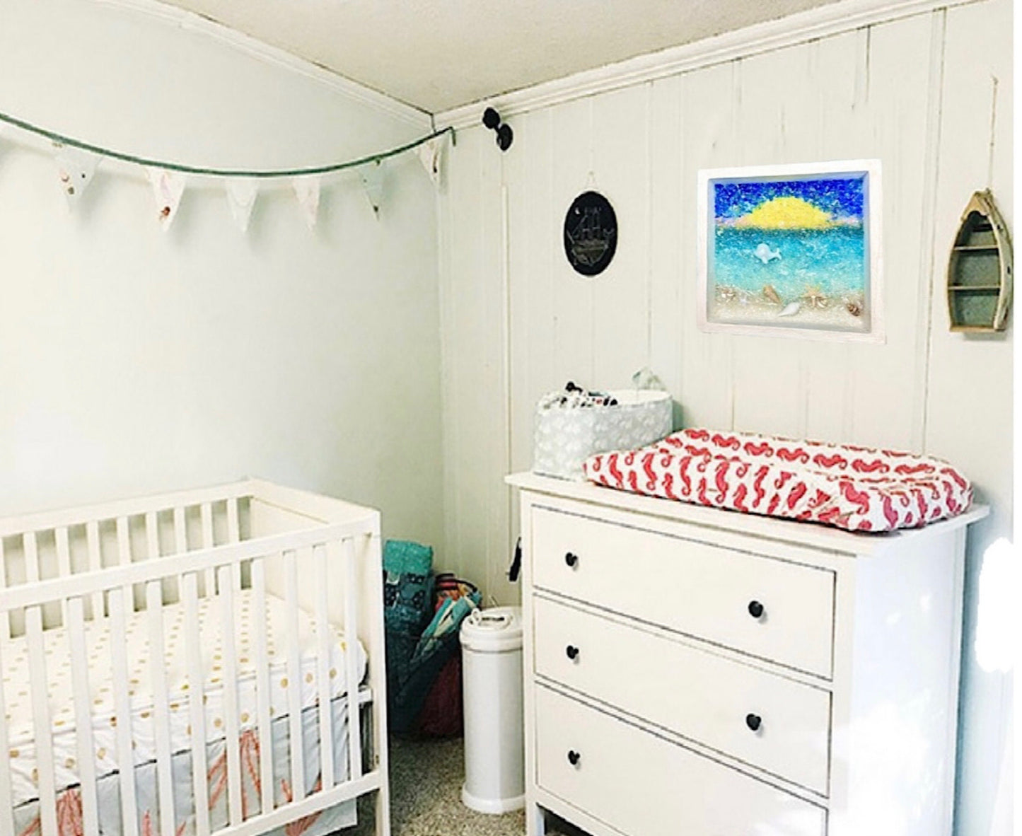 This small but mighty little picture is a perfect addition to a beach themed baby nursery, child’s room, bathroom, powder room, reading nook, hallway or most anywhere that could use a little sun, sand and sea!