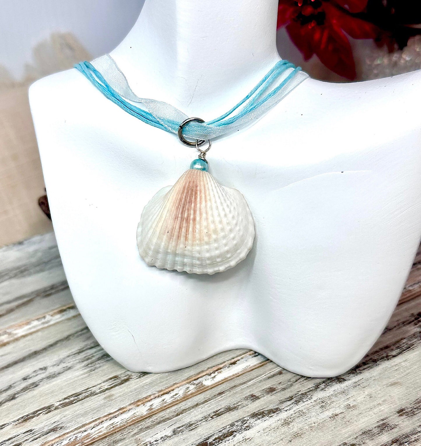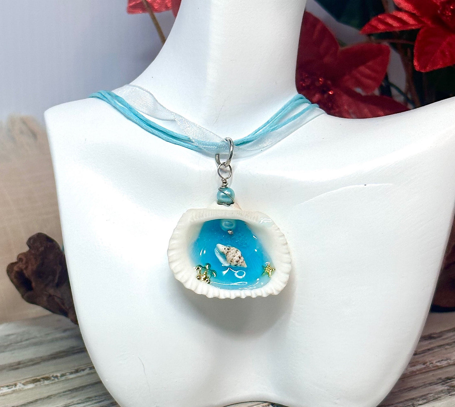 White Seashell Necklace-Resin Beach Scene Seashell Ornament-Ocean Car Charm-Coastal Jewelry-For Her For Him For Them
